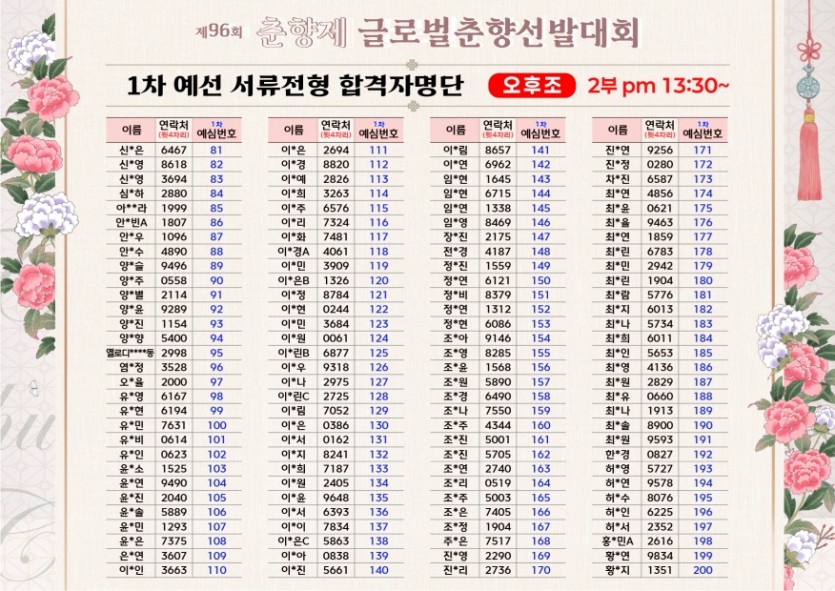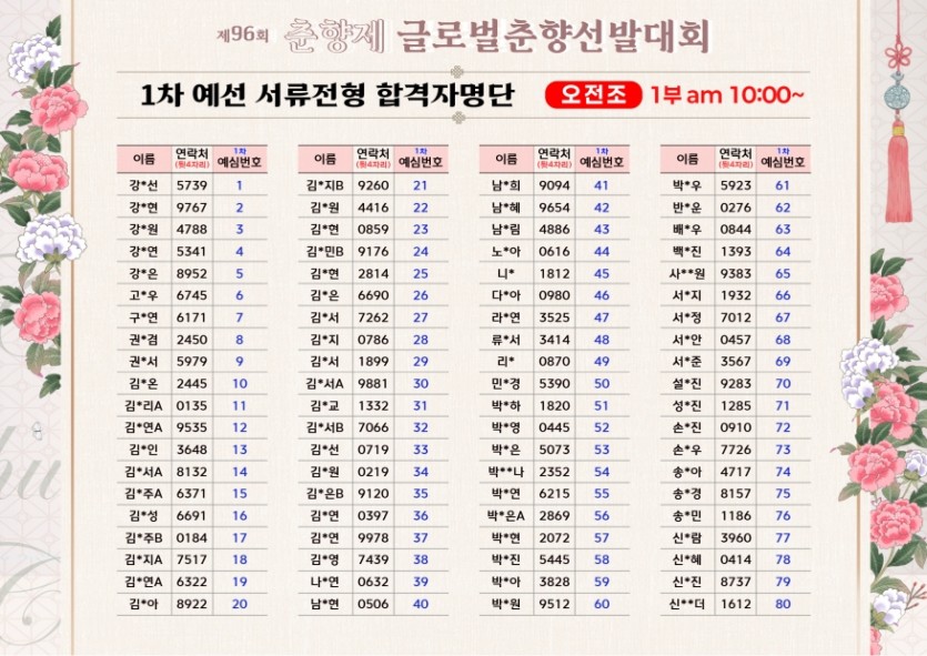 제96회 춘향선발대회 서류합격자 및 1차예심 안내